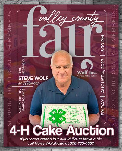 Bid on your favorite decorated cake by our local 4-H members! Not able to attend? Call Harry Walahoski at 308.730.0667 to leave a bid!